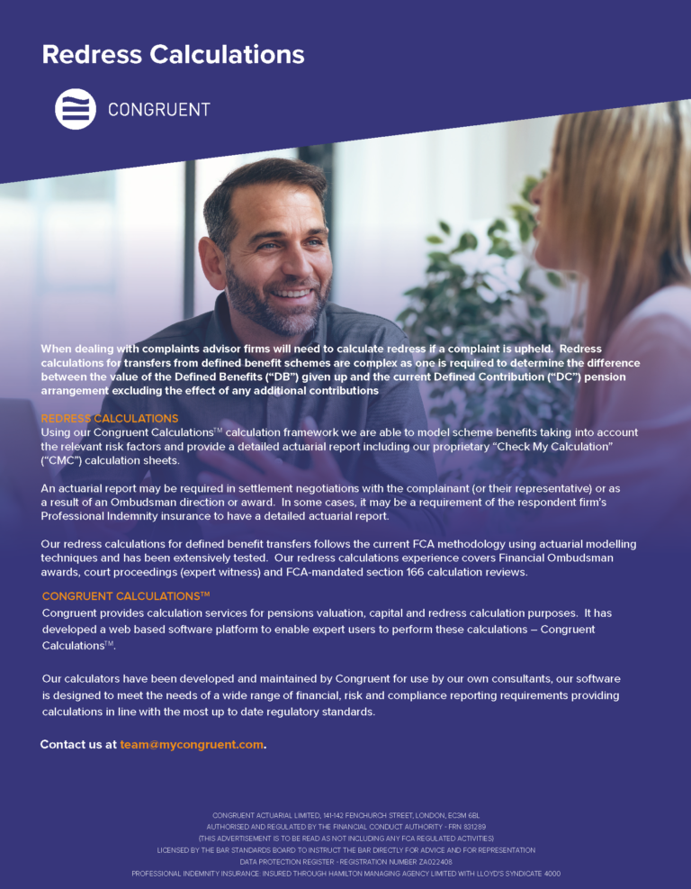 Expert actuarial input for financial mis-selling and compensation claims – also see Congruent Redress Calculation Services. - Capital Modelling